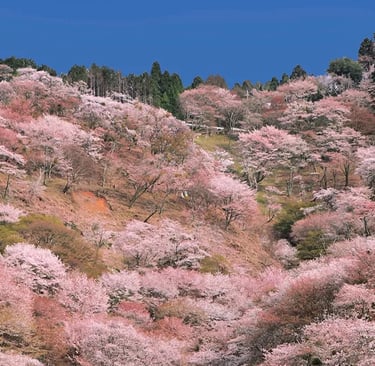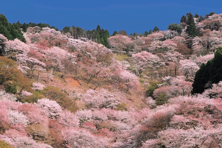 Legendary cherry tree mountain covered in thousands of blossoms in tiered forests — a must-see for serious sakura fans.
